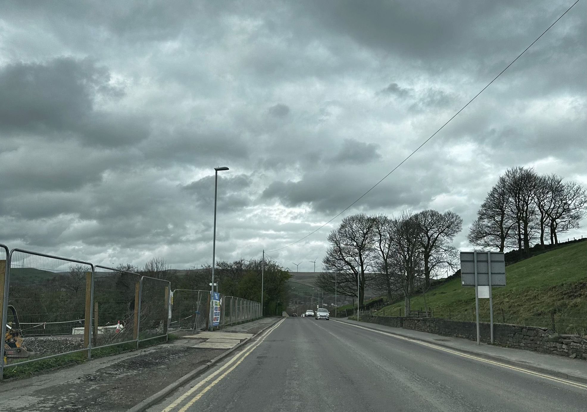 A resident brought Hollingworth Road to a standstill yesterday, more than the council do by positioning her car across the entrance to a housing development, creating the area’s first effective barrier against the slow, grinding advance of mud, dust and administrative indifference, reporting from down the M62.
